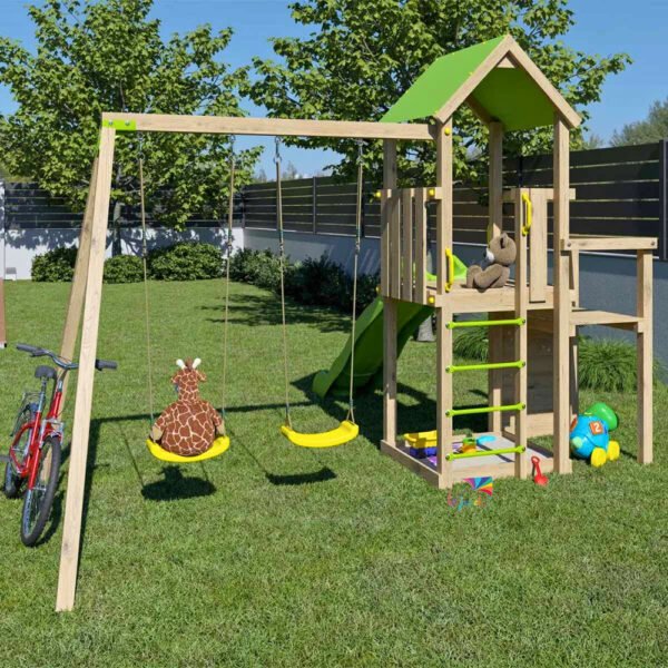 Avec cette Aire de jeux bois ULTRA XPERIENCE – Trigano, les enfants pourront s’amuser en toute sérénité. Les plus petits pourront développer leur créativité en jouant dans le bac à sable et expérimenter les sensations de glisse sur le toboggan. Les plus grands deviendront des champions de la balançoire et de la grimpe grâce au mur dédié et mettront à profit leur imagination pour inventer les histoires les plus invraisemblables et animer de longs après-midi. Au sommaire :