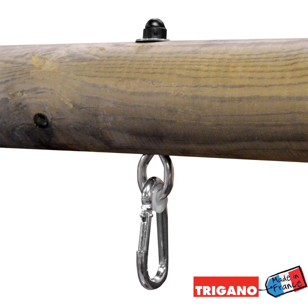 - Accroche par mousquetons facilitant les échanges d’agrès ou leur hivernage