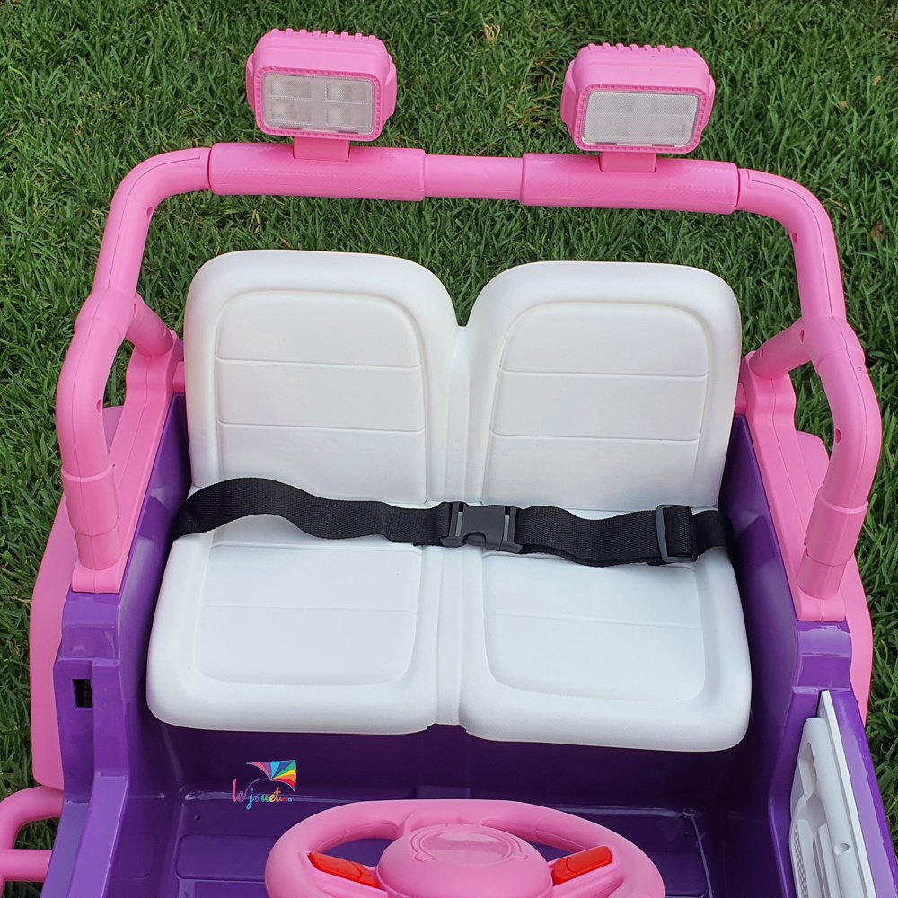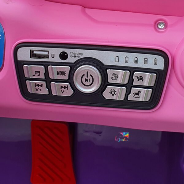 Cette Voiture électrique pour enfants Style Barbie rose 12 V est équipée de 4 puissants moteurs 12 volts et roule avec 3 vitesses réglables entre 2 et 8 km par heure. Avec son « démarrage en soft », les enfants ne ressentent aucun choc lors de l’accélération. De plus, la voiture pour enfants est équipée d’une ceinture de hanche, roues à ressort ,2 vraies portes, feux LED fonctionnels, éclairage du tableau de bord, Entrée USB, MP3 et mini SD pour jouer Eigen musique.